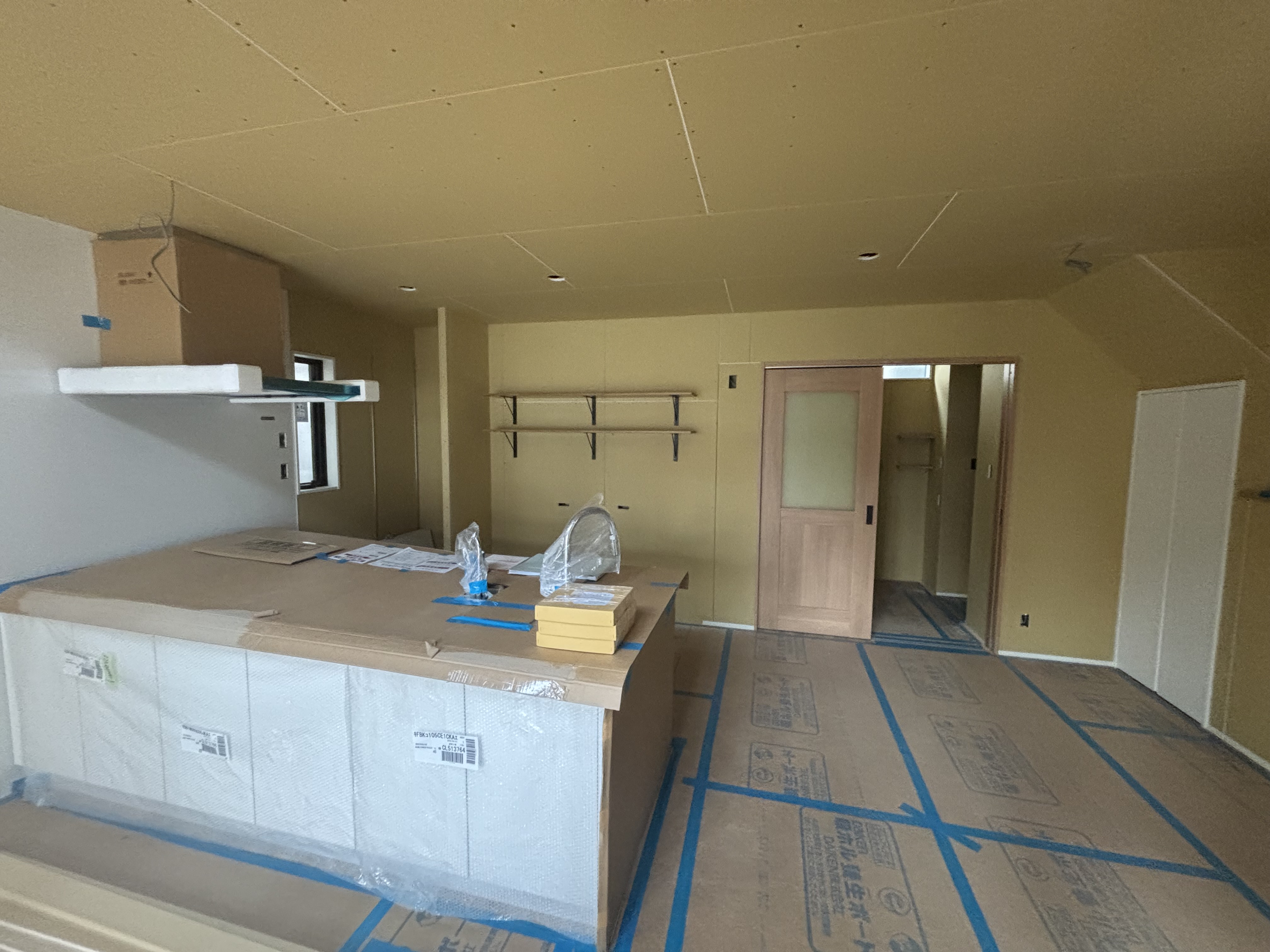 石膏ボードが張られ、お家の間取りや空間の広さが